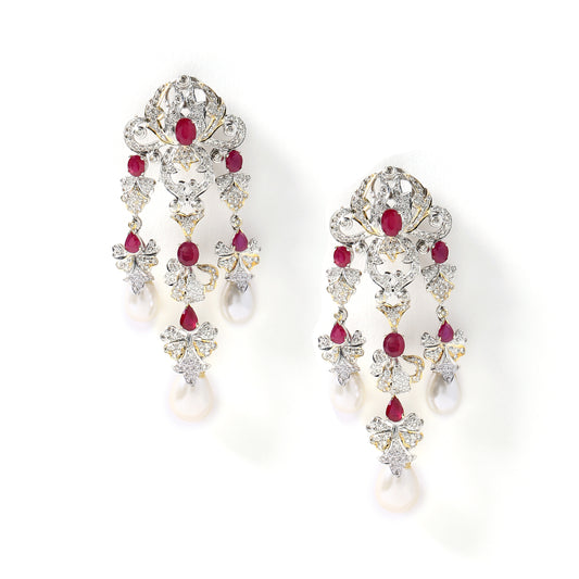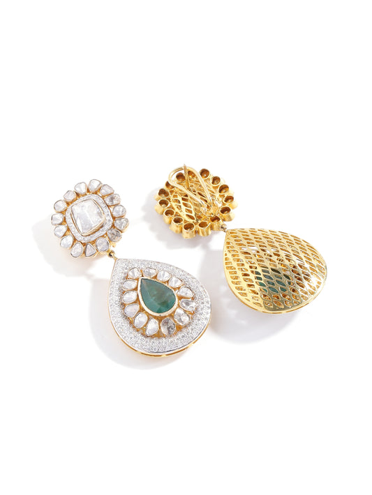 Rose Cuts Diamonds Drop Earrings With Green Color Stone