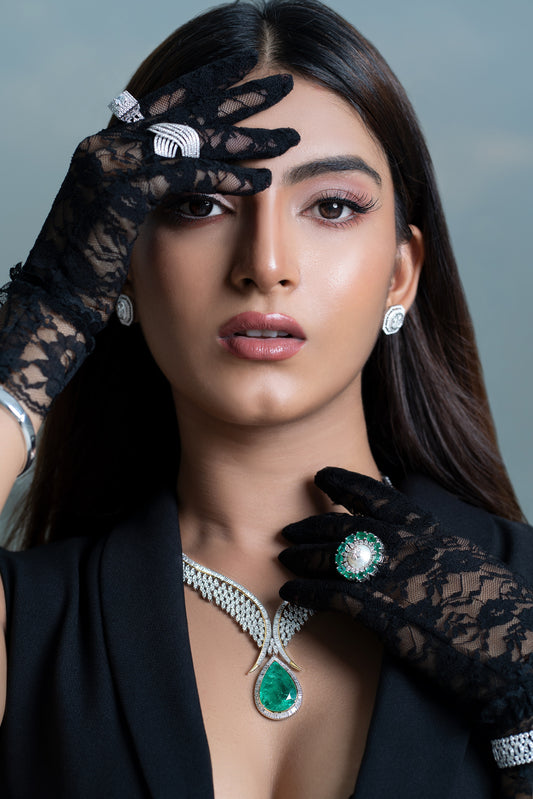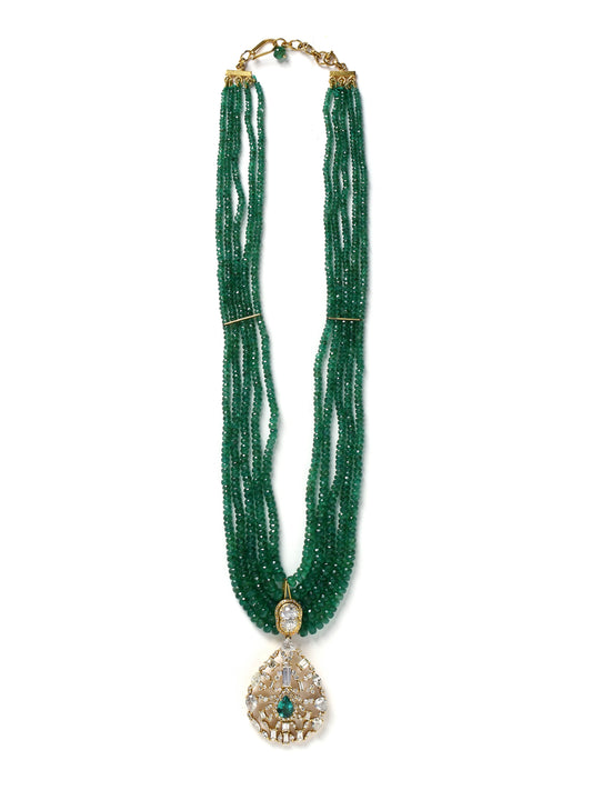 Emerald Diamond Rose Cut Pendant With Emerald Strings