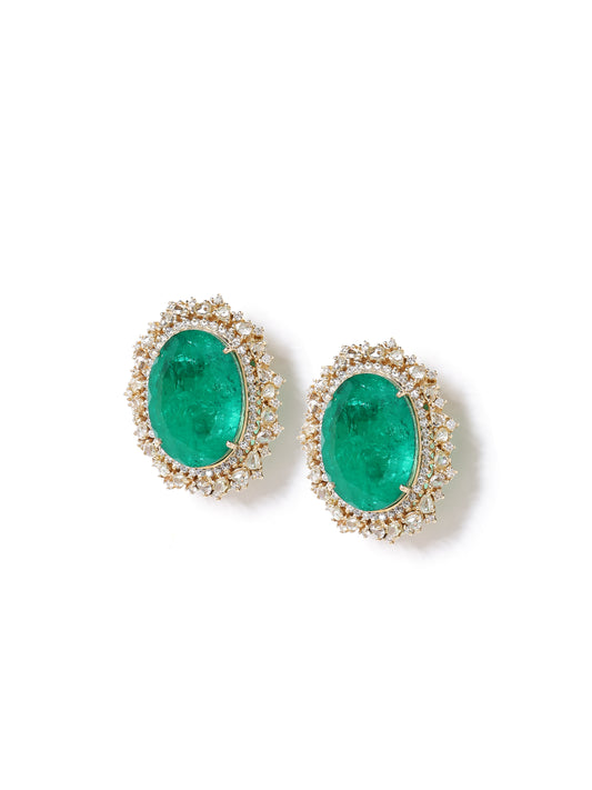 Rose Cut Diamonds Earrings With Green Gem Stone