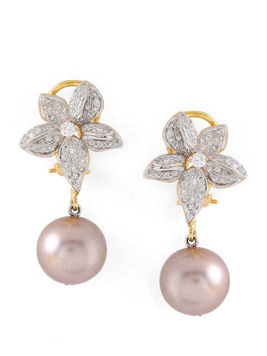Cherry Blossom Earrings with Mauve Pearl Drops