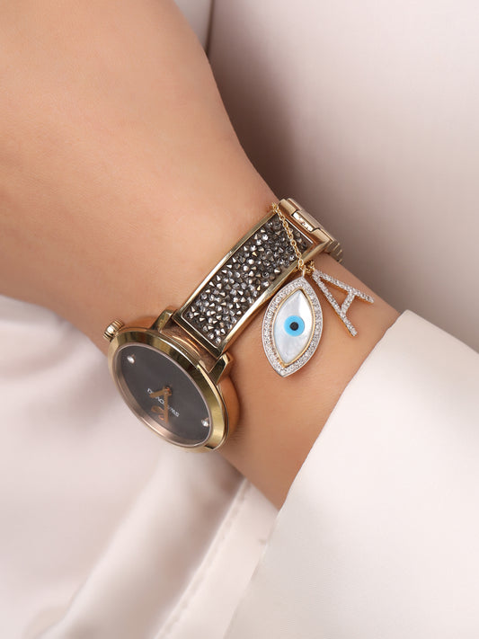 EVIL EYE WITH "A" INTIAL WATCH CHARM